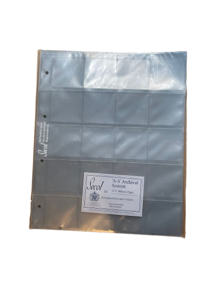 FUNDAS POLIESTER 75 MIC P/CAJA ANILLAS 20 DIV. 57x52mm DIAPOSITIVAS (PACK 25)