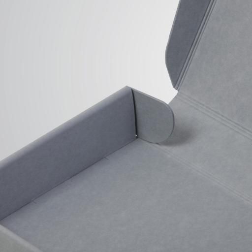 La caja plegable es una construcción clásica y rígida que se puede utilizar para almacenar varios tipos de objetos, desde libros pequeños hasta pergaminos frágiles, mapas y planos a gran escala. MODELO IIa MEDIDAS INTERIORES 340x250x55mm CARTÓN FRANCESCO 1.3mm (color gris claro)